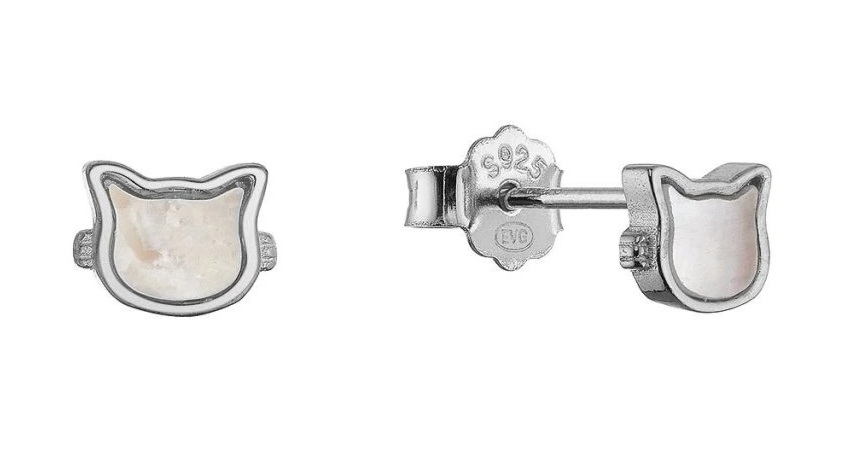 Evolution Group Roztomilé strieborné náušnice s perleťou Mačičky 11711.1