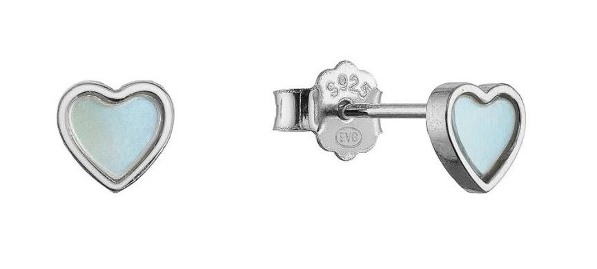 Evolution Group Strieborné srdiečkové náušnice s modrou perleťou 11710.3