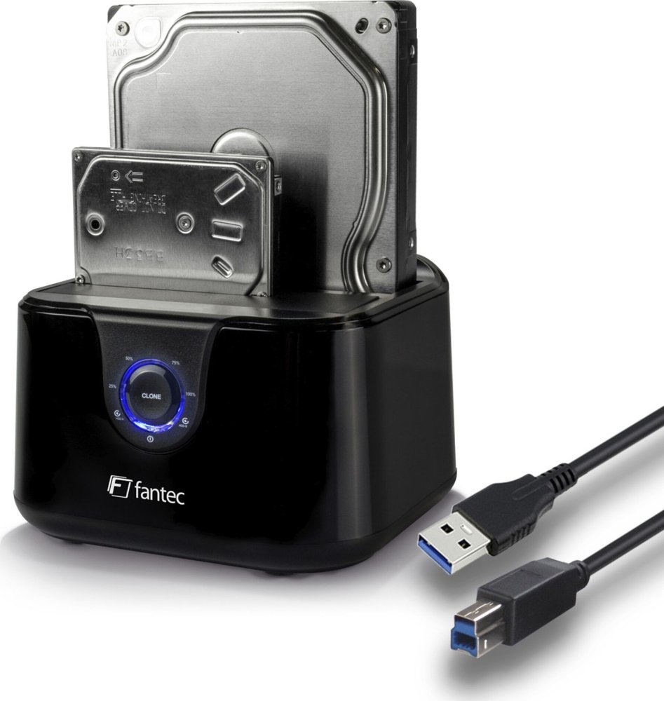 Fantec FANTEC DS-X2U3-Glanz - Bis zu 2x 6,35cm 2,5Zoll und/oder bis zu 8,89cm 2x 3,5Zoll SATA HDD Klon & Dockingstation