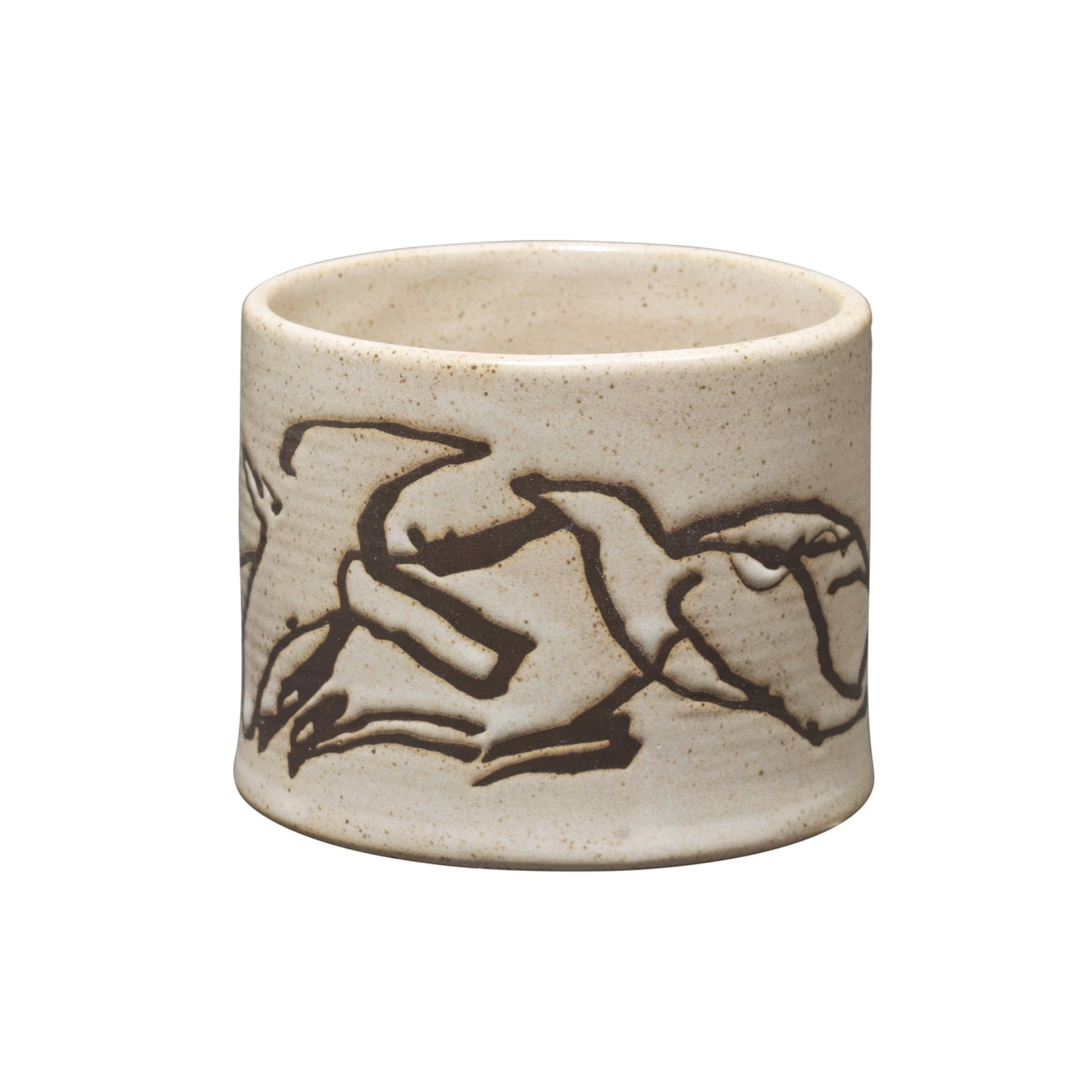 Hrnček je vyrobený z glazovanej keramiky a každý kus nesie výrazné známky ručnej výroby, čo mu dodáva jedinečnú remeselnú kvalitu. Dizajn vtákov je stvárnený tradičnou batikovou technikou, pri ktorej vosk odoláva glazúre, čoho výsledkom sú zložité vzory, ktoré zvýrazňujú remeselnú povahu hrnčeka.