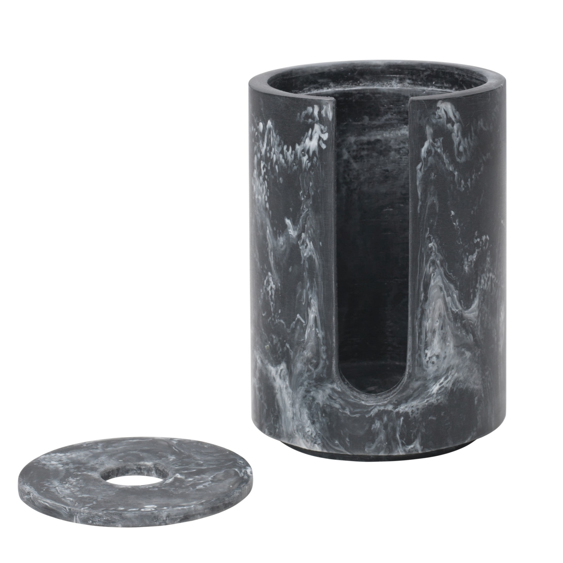 Vhodný na vatové tampóniky, drobnú kozmetiku alebo dekoratívne predmety. priemer 8 cm / výška 11,8 cm Vyrobené zo živice.