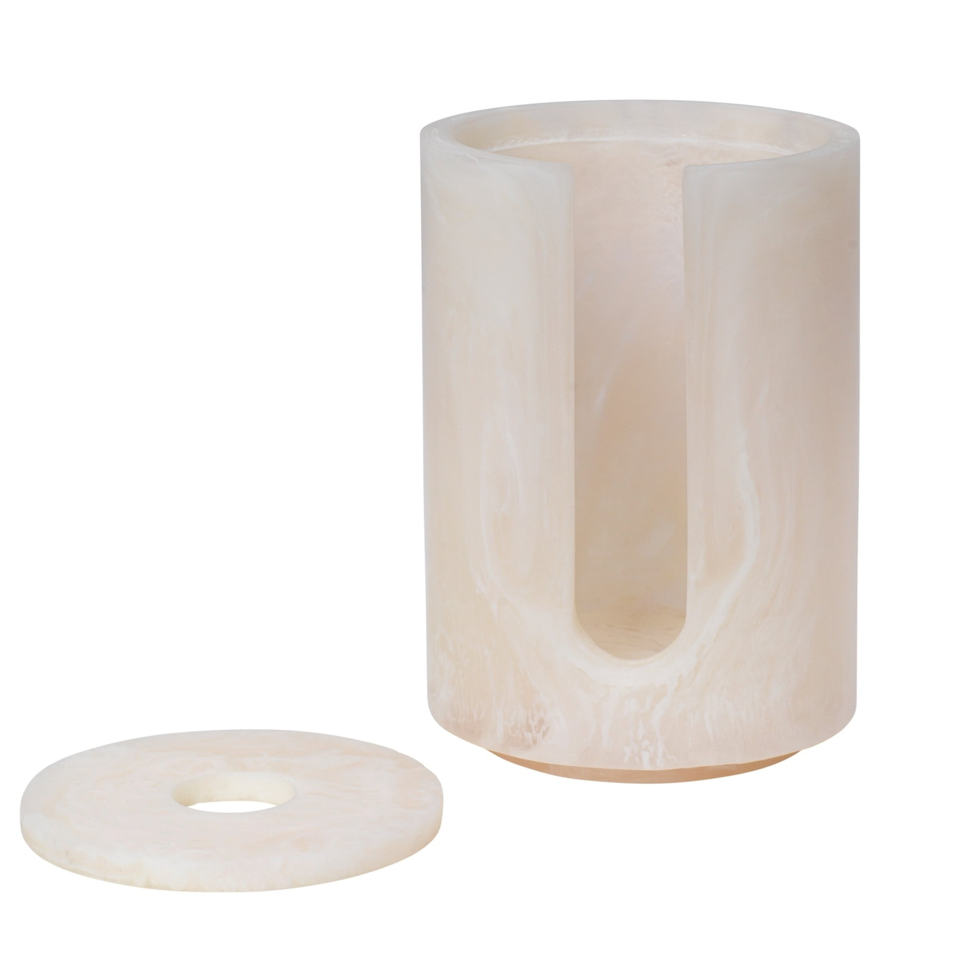 Vhodný na vatové tampóniky, drobnú kozmetiku alebo dekoratívne predmety. priemer 8 cm / výška 11,8 cm Vyrobené zo živice.