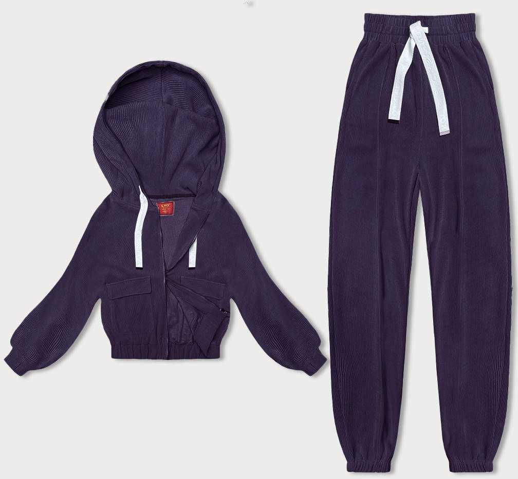 Domov Oblečenie a móda Dámske oblečenie Dámske blúzky a košele Fialový rebrovaný teplákový komplet (AMG-335A) odstíny fialové XL (42)