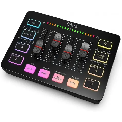 FIFINE SC3 audio mixer RGB čierna / mixážny pult / 18 efektov / XLR / 2x 3.5mm Jack