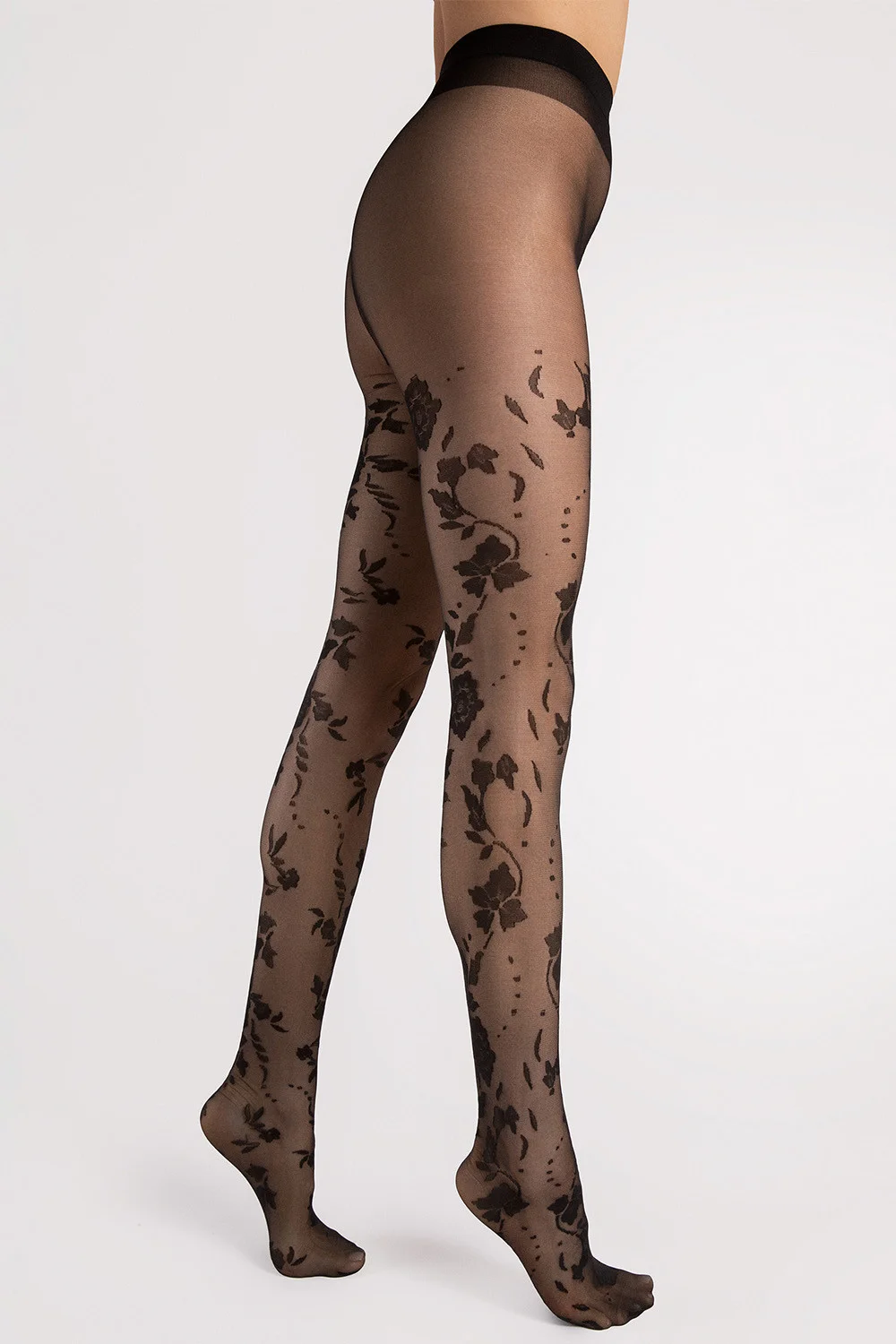 Pančuchové nohavice Fiore, model Flores 20 DEN G6110, vyrobené z 90 % polyamidu, 10 % elastanu, bez vyznačených prstov, hrúbka 20 DEN, bez vyznačených nohavíc.