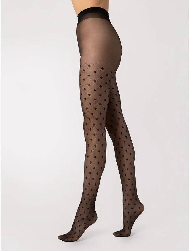 Dámske pančuchové nohavice - zdobené jemným vzorom - hrúbka 15 den - bez označených nohavičiek - bez zosilnenia na špičkách - s malým klinom Zloženie: 90 % polyamid, 10 % elastan
