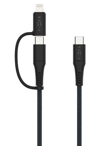 FIXED Dlhý nabíjací a dátový opletený kábel s konektormi USB-C/USB-C a Lightning adaptérom PD 3M MFi PD 60W sivý (FIXDB-CCL3-GR)