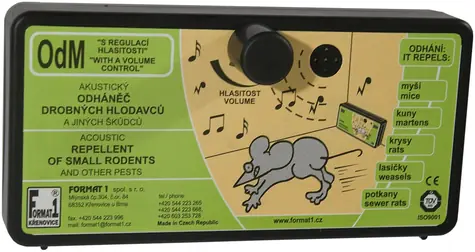 Format1 OdM+ batéria - odháňač na myši plašič kún pre dom a chatu / Počuteľný s reguláciou hlasitosti / 100 m2 (OdM+baterie)