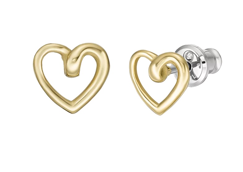 Fossil Krásne pozlátené náušnice srdiečka Sawyer JOF00930710