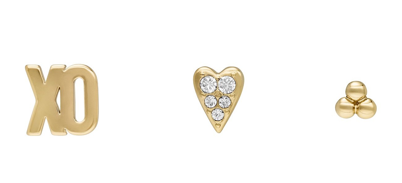 Fossil Pozlátený set kôstkových náušníc All Stacked Up JA7277SET