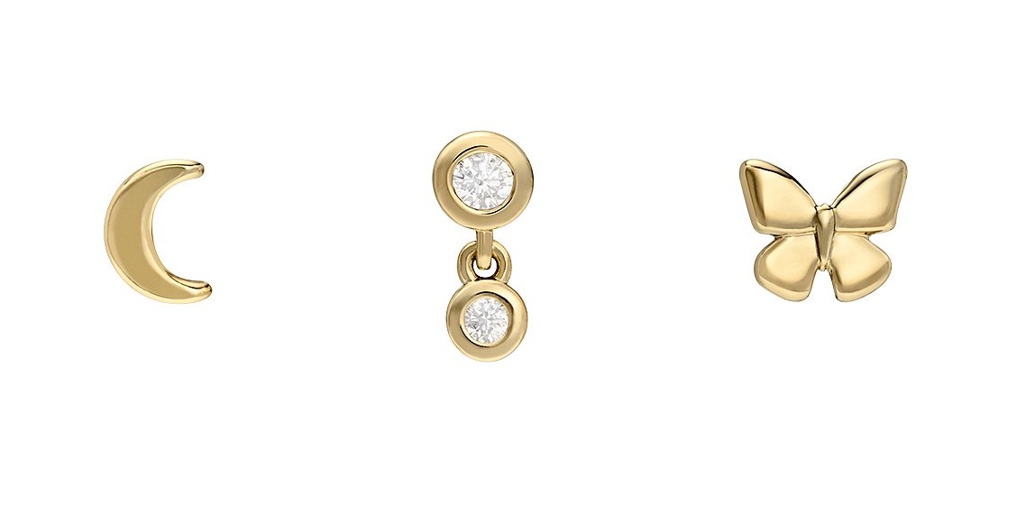 Fossil Pozlátený set kôstkových náušníc All Stacked Up JA7278SET