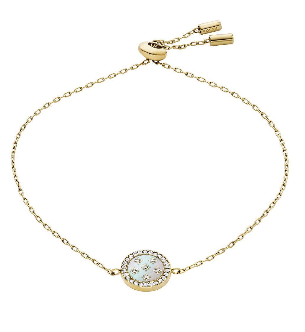 Fossil Úchvatný pozlátený náramok s perleťou a kryštálmi JF04866710