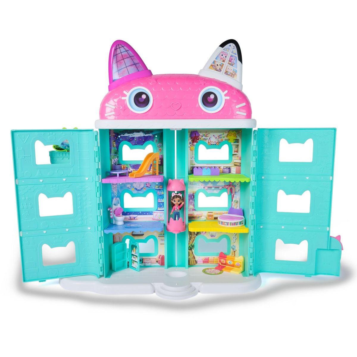 Vstúpte do sveta, kde každý kútik ukrýva prekvapenie! Veľký domček Gábikin čarovný domček (viac ako 60 cm vysoký) prináša deťom radosť a fantáziu priamo z filmového plátna. Sedem izieb plných detailov, lentikulárne oči a funkčný mačací výťah otvárajú dvere k nekonečným príbehom.