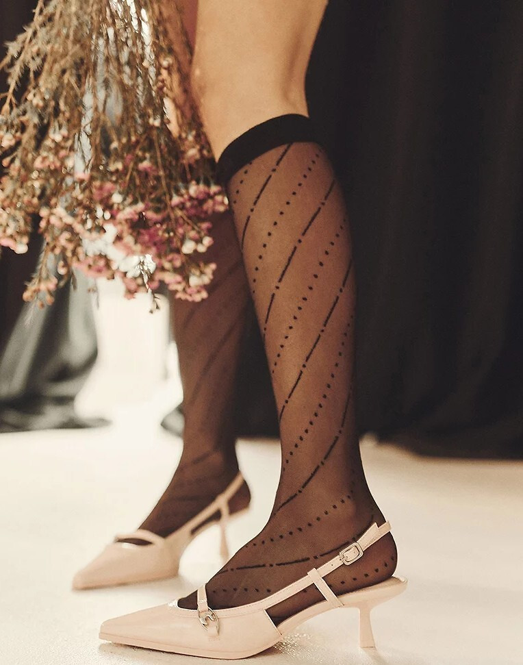 Dámske vzorované ponožky - bez zosilnenia prstov - široký netlačiaci lem Zloženie: 85 % polyamid, 15 % elastan