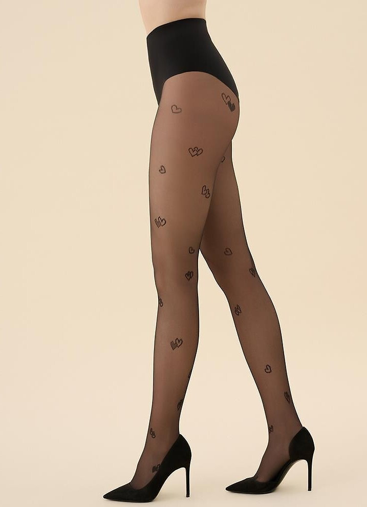 Dámske pančuchy - elastické vlákno s dvojitou vrstvou polyamidového hodvábu - hrúbka 20 denierov - potlač srdiečok - neviditeľná výstuž na špičke - bez oddelenej nohavičkovej časti - ploché švy, veľký klin Zloženie: 84 % polyamid, 15 % elastan, 1 % bavlna