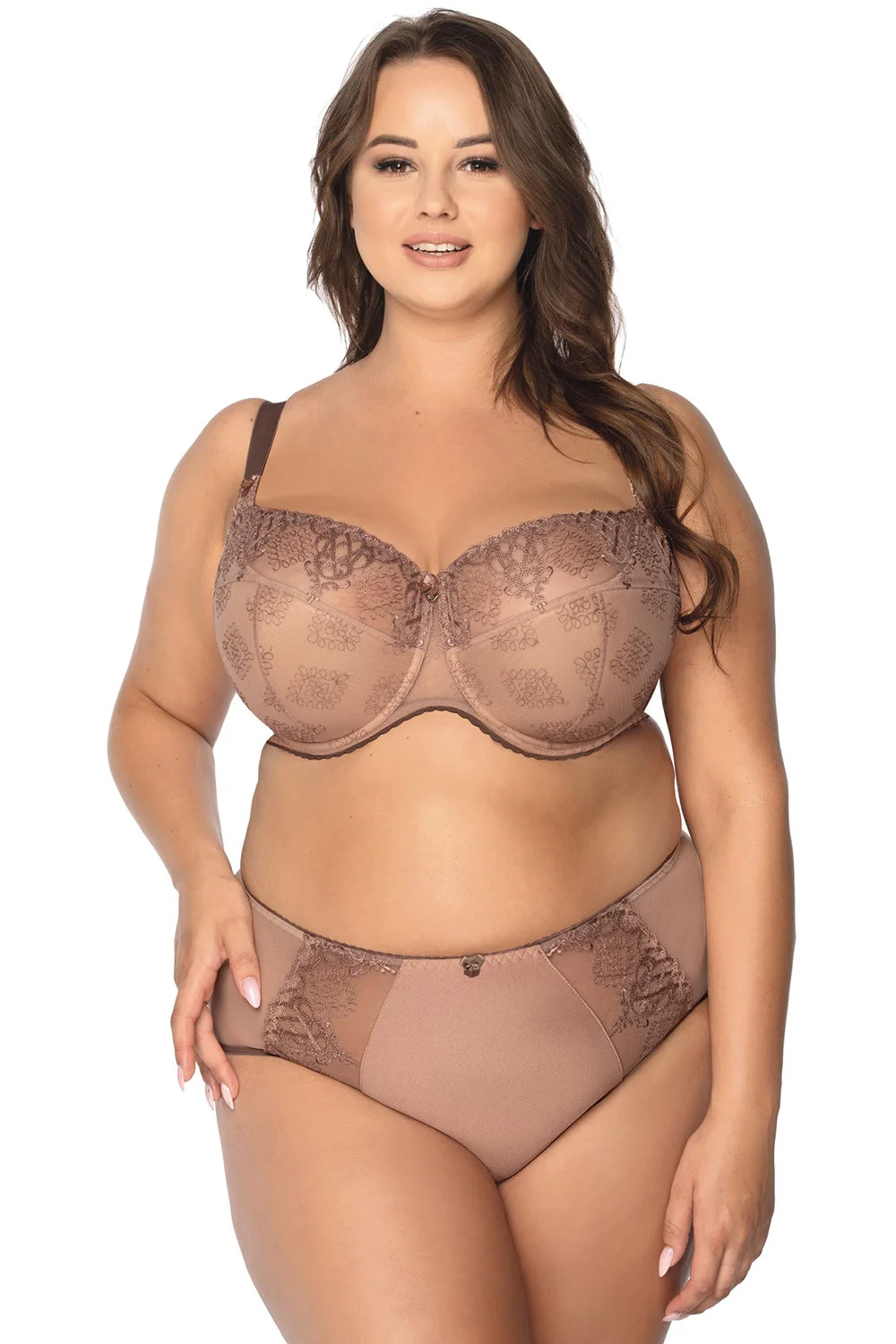 Podprsenka Gaia, model 1107M Elena Maxi, s drôtikmi na podporu a tvarovanie pŕs, zvislé kostice na bokoch, nastaviteľné ramienka s kovovými háčikmi, zapínanie na háčik a očko, zadná časť, vyrobená z 53% polyamidu, 18% bavlny, 15% polyesteru, 9% elastanu, 5% polyuretánu, vhodná pre ženy.