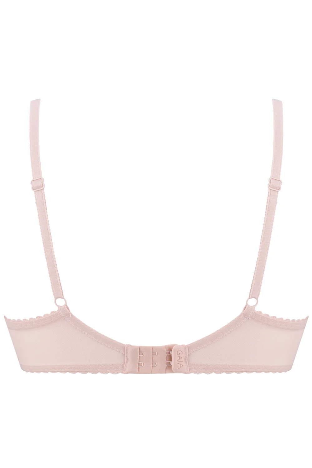 Podprsenka Gaia. Model 480 Pilar. Má drôty, ktoré prsia vhodne tvarujú. Zvislé veľrybie kosti zasadené po stranách. Výrobok má nastaviteľné popruhy bez možnosti odopnutia. Kovové háčiky na popruh. Podprsenka so zapínaním na háčiky a oči. Upevňovací bod: vzadu. Dva rady zvislých háčikov. Tri stupne horizontálnych háčikov. Výrobok je vyrobený z 57% z polyamidu, 33% z polyesteru a 10% z elastanu. Výrobok pre ženy.