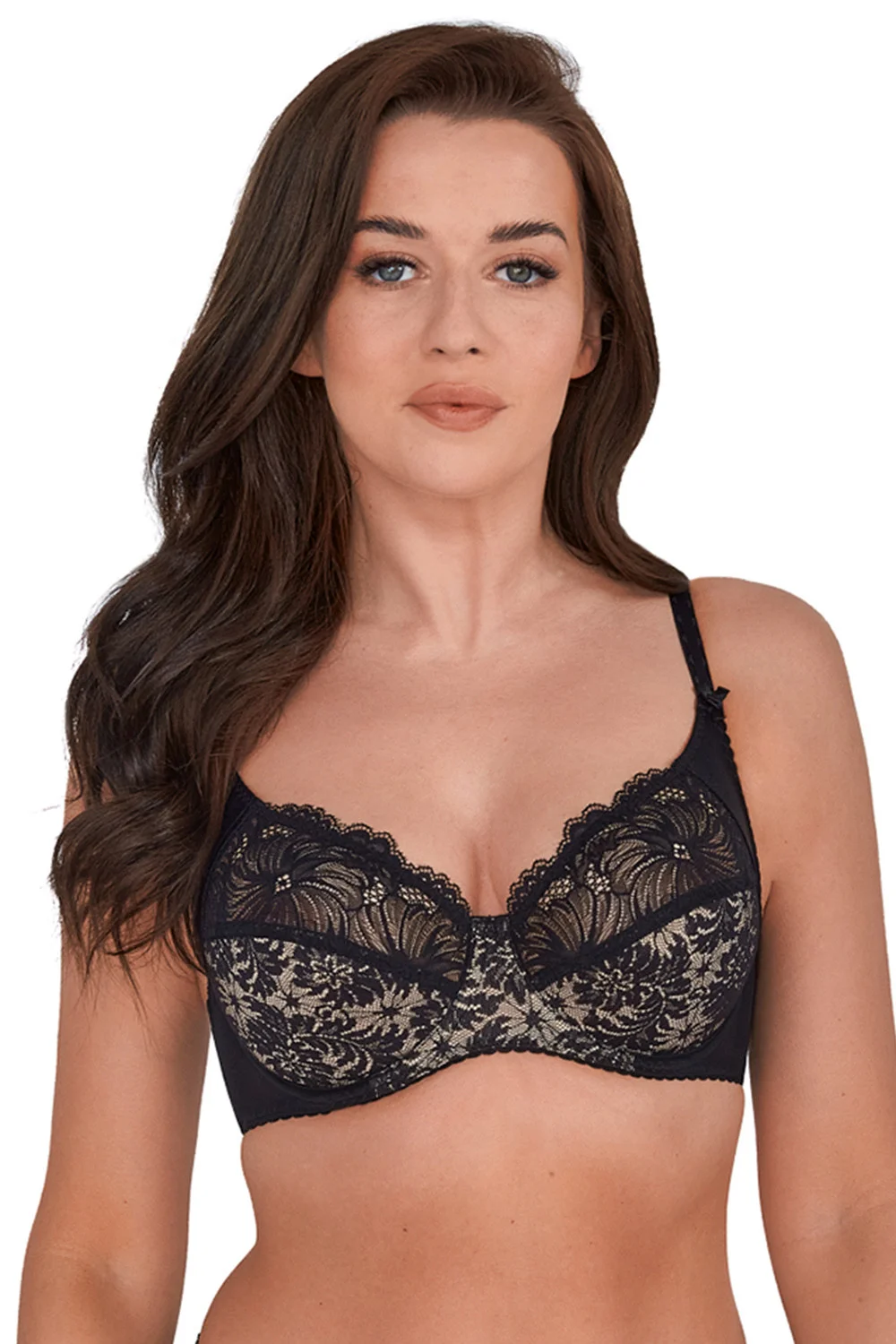 Podprsenka Gaia, model 534 Chantal, s kosticami na podporu a tvarovanie pŕs, zvislé kostice na bokoch, nastaviteľné ramienka, zapínanie na kovový háčik na ramienkach, zadná časť, vyrobená zo 48 % polyamidu, 40 % polyesteru a 12 % elastanu, ženská, sexy čipka.