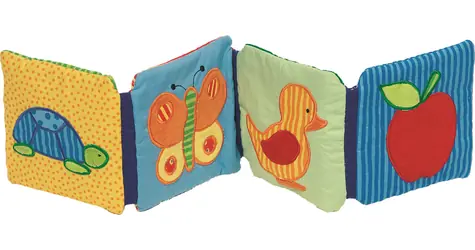 GOKI Bavlnená šuštiaca knižka s hrkálkou a pískatkom