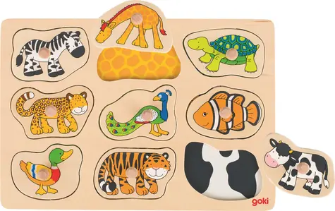 GOKI Drevená vkladačka Zvieratká / od 12 mesiacov