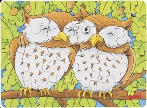 GOKI Drevené puzzle Lesné zvieratká: Sovy