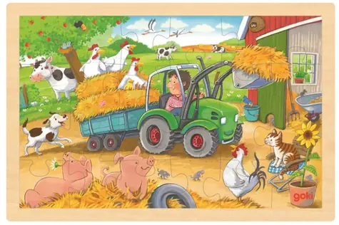 GOKI Drevené puzzle Malý traktor / 24 dielikov / od 3 rokov