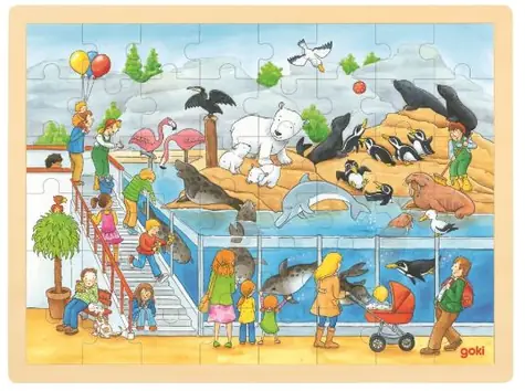 GOKI Drevené puzzle Návšteva Zoo / 48 dielikov / od 3 rokov