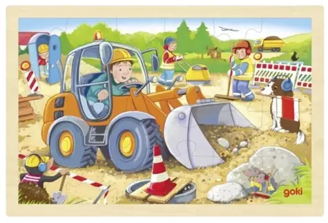 GOKI Drevené puzzle Stavenisko / 24 dielikov / od 3 rokov