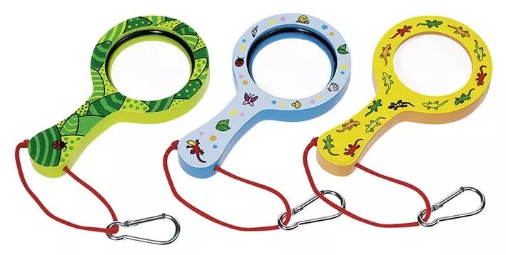 Detská lupa s priemerom 9,8 cm s rôznymi motívmi, vhodná na výlety a vychádzky do prírody. Vďaka svojej veľkosti je ideálna pre malé detské ruky.