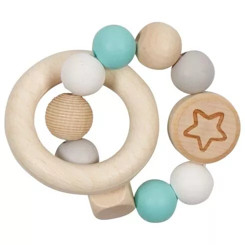 Bábätká pomocou krúžkov objavujú rôzne povrchy a tvary. Drevený krúžok má v sebe jemné vrúbky, naopak silikónové koráliky sú ľahko poddajné a hladké. Hračka je navrhnutá tak, aby bola dobre uchopiteľná v malej ručičke.
