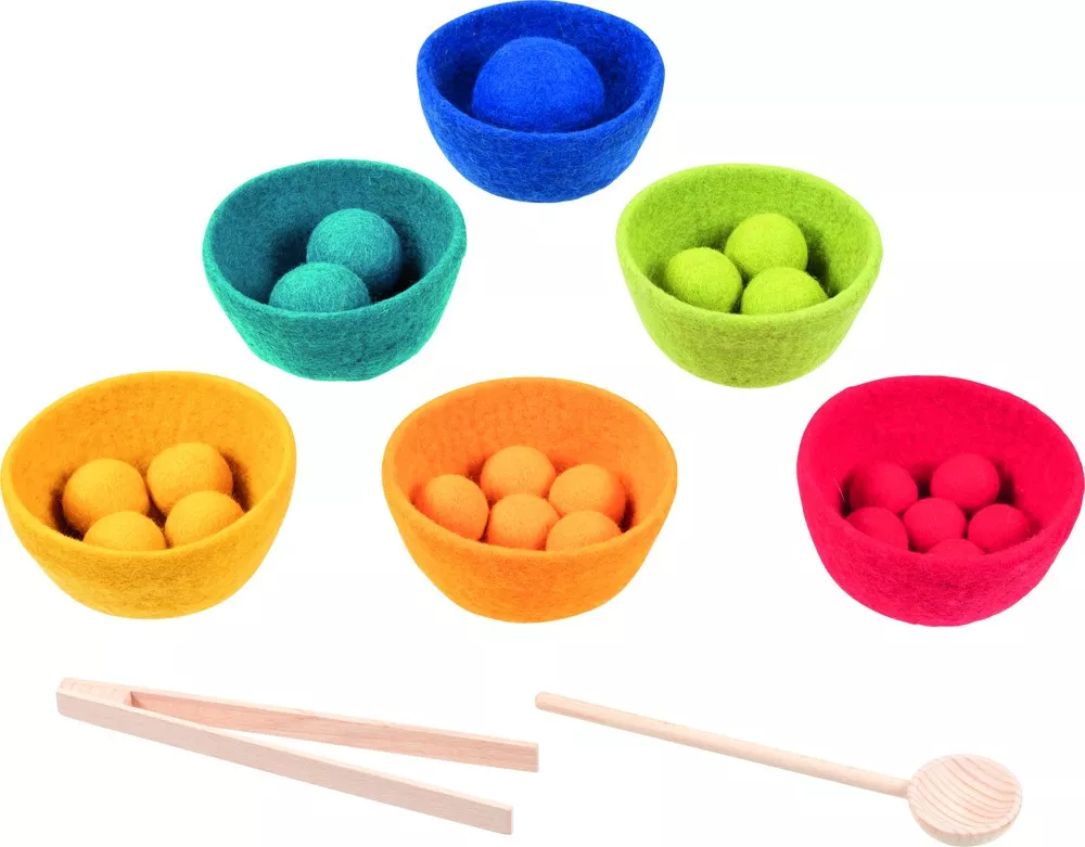 - 6 pestrofarebných misiek z vlneného filcu