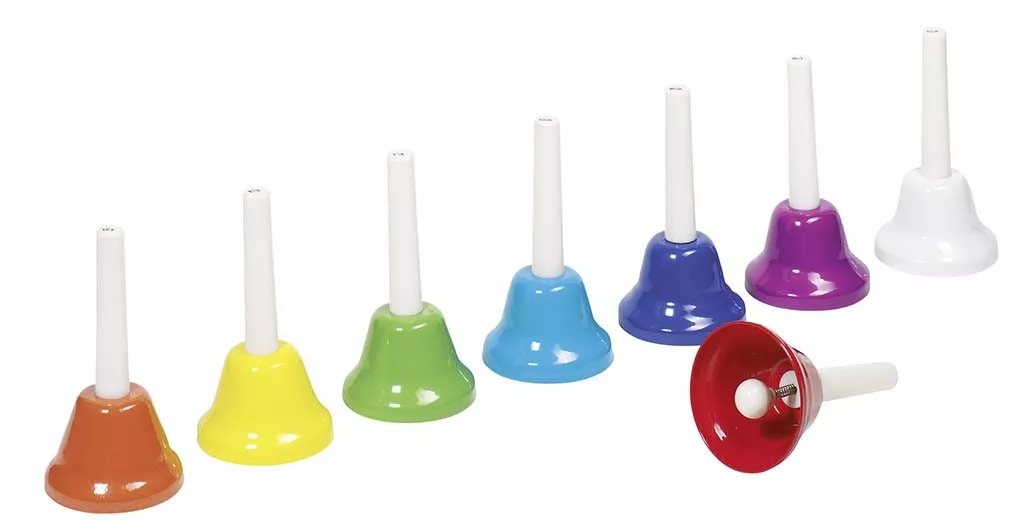 Pestrofarebné zvončeky, vyrobené z plastu a kovu, sú vhodné do každej detskej izbičky. Každý zvonček vydáva odlišný tón, čo podporuje záujem detí o hudbu a rytmiku.