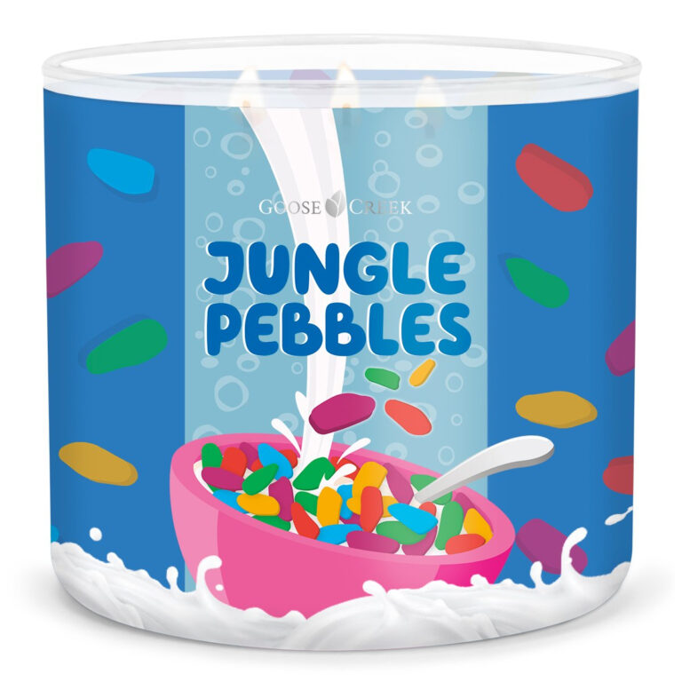 Vonná sviečka Jungle Pebbles od Goose Creek obsahuje sójový vosk a 3 knôty, ktoré zaisťujú čisté horenie a intenzívne prevoňanie interiéru vôňou obľúbených