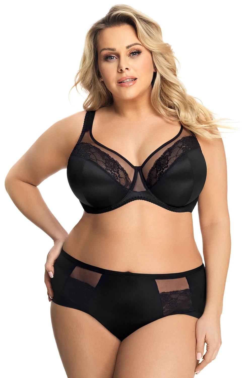 Táto podprsenka značky Gorsenia, model K441 Luisse, má drôtiky, ktoré podporujú a tvarujú prsia. zvislé kostice na bokoch. nastaviteľné ramienka bez možnosti odopnutia. zapínanie na háčiky a očká. miesto zapínania: na chrbte. 2 rady zvislých háčikov. 3 vrstvy vodorovných háčikov. vyrobené z 90 % polyamidu, 7 % elastanu, 3 % polyesteru. vlastnosti výrobku: elegantná maxi veľkosť mäkké široké ramienka. dámsky výrobok.