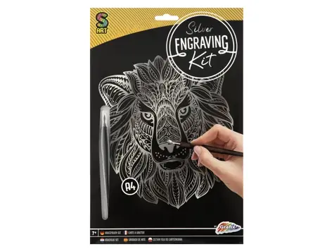 GRAFIX Strieborný škrabací obrázok Lev / od 7 rokov