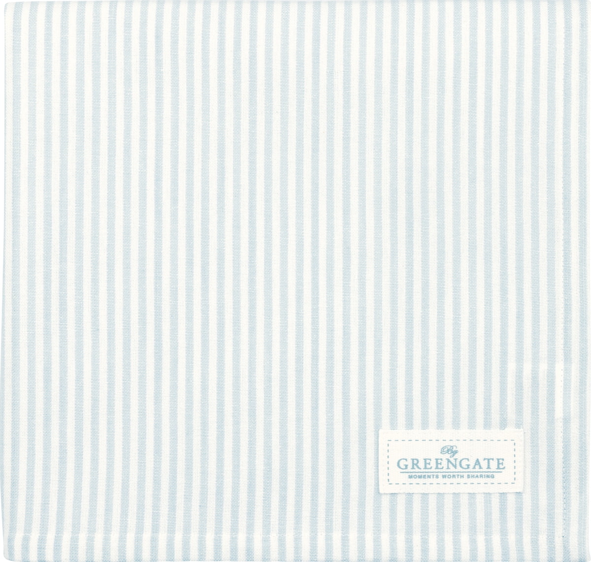 Bavlnený obrus zdobí nadčasový motív pruhov v pastelovej modrej farbe. Skombinujte ho s ďalšími doplnkami a riadom z rovnakej kolekcie a dolaďte svoj domov k dokonalosti. šírka 100 cm / dĺžka 100 cm Vyrobené zo 100 % bavlny s certifikátom OEKO-TEX®.