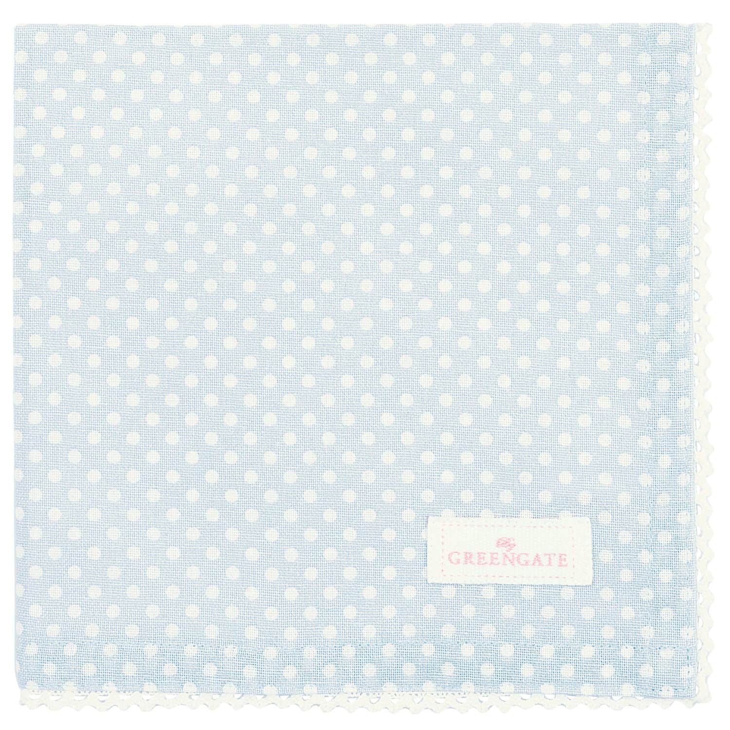 Dodajte svojmu stolovaniu romantický nádych s týmto bavlneným obrúskom s jemnou čipkou po obvode od dánskej značky Green Gate. Pastelov modrú farbu dopĺňajú malé biele bodky.