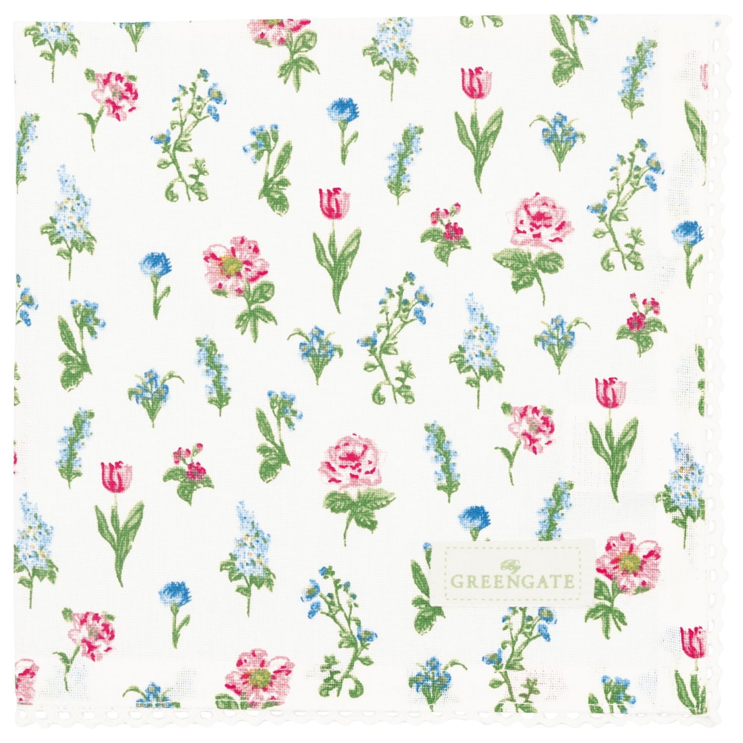 Dodajte svojmu stolovaniu romantický nádych s týmto bavlneným obrúskom s jemnou čipkou po obvode od dánskej značky Green Gate v krásnom kvetinovom motíve Estrid White.