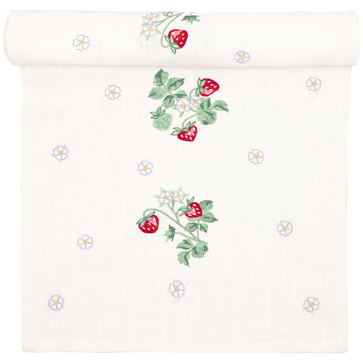 Je vyrobený z čistej bavlny, príjemnej na dotyk, a zdobí ho jemná výšivka jahôd a kvetov. Vďaka kvalitnému spracovaniu je ideálny na každodenné stolovanie, ako aj na slávnostné príležitosti.