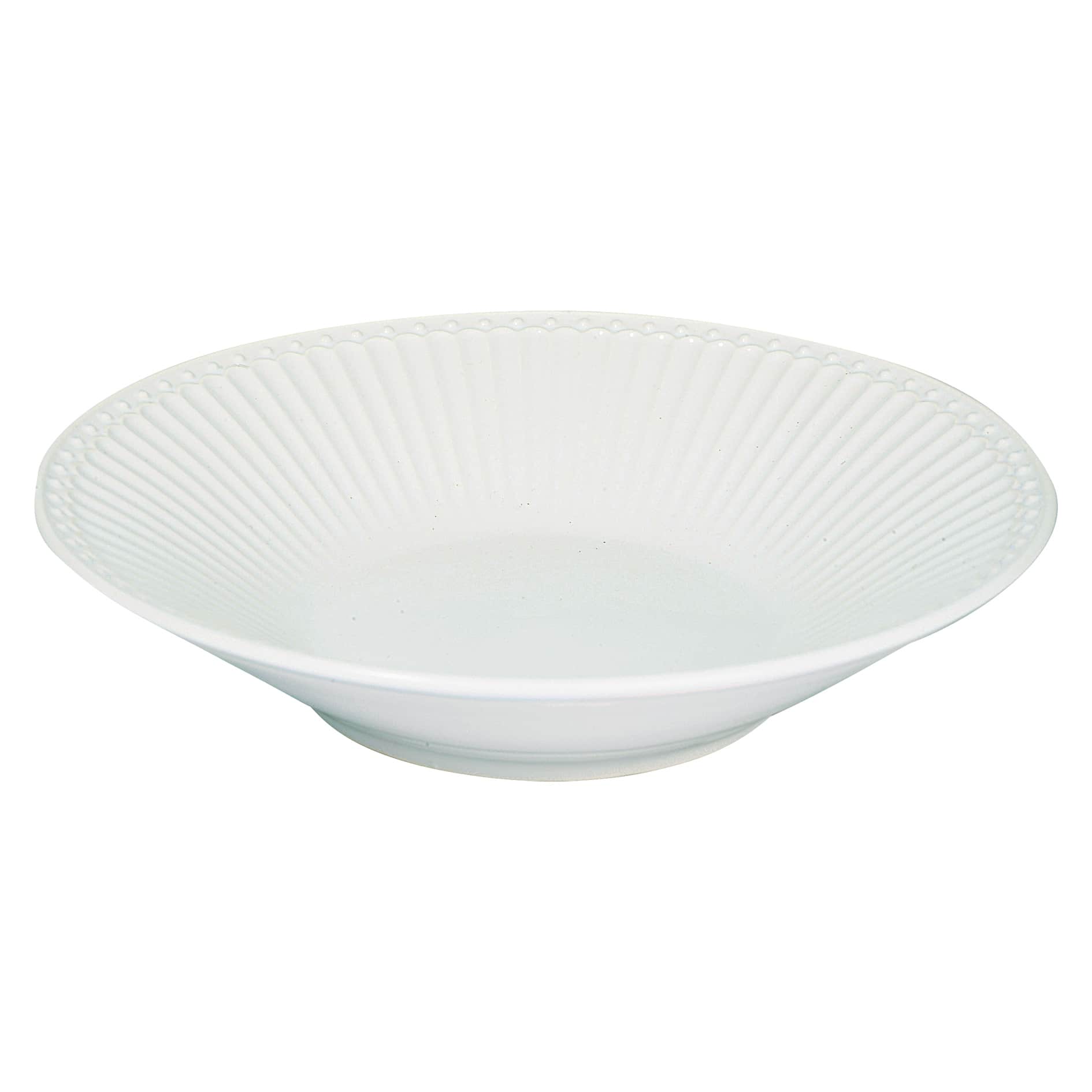 Tanier je vyrobený z porcelánu a okrem bielej glazúry ho zdobia aj plastické ryhy po celom okraji, ktoré sú pre kolekciu Alice také typické. Vďaka ideálnej hĺbke do taniera môžete servírovať nielen cestoviny, ale napríklad aj polievku.