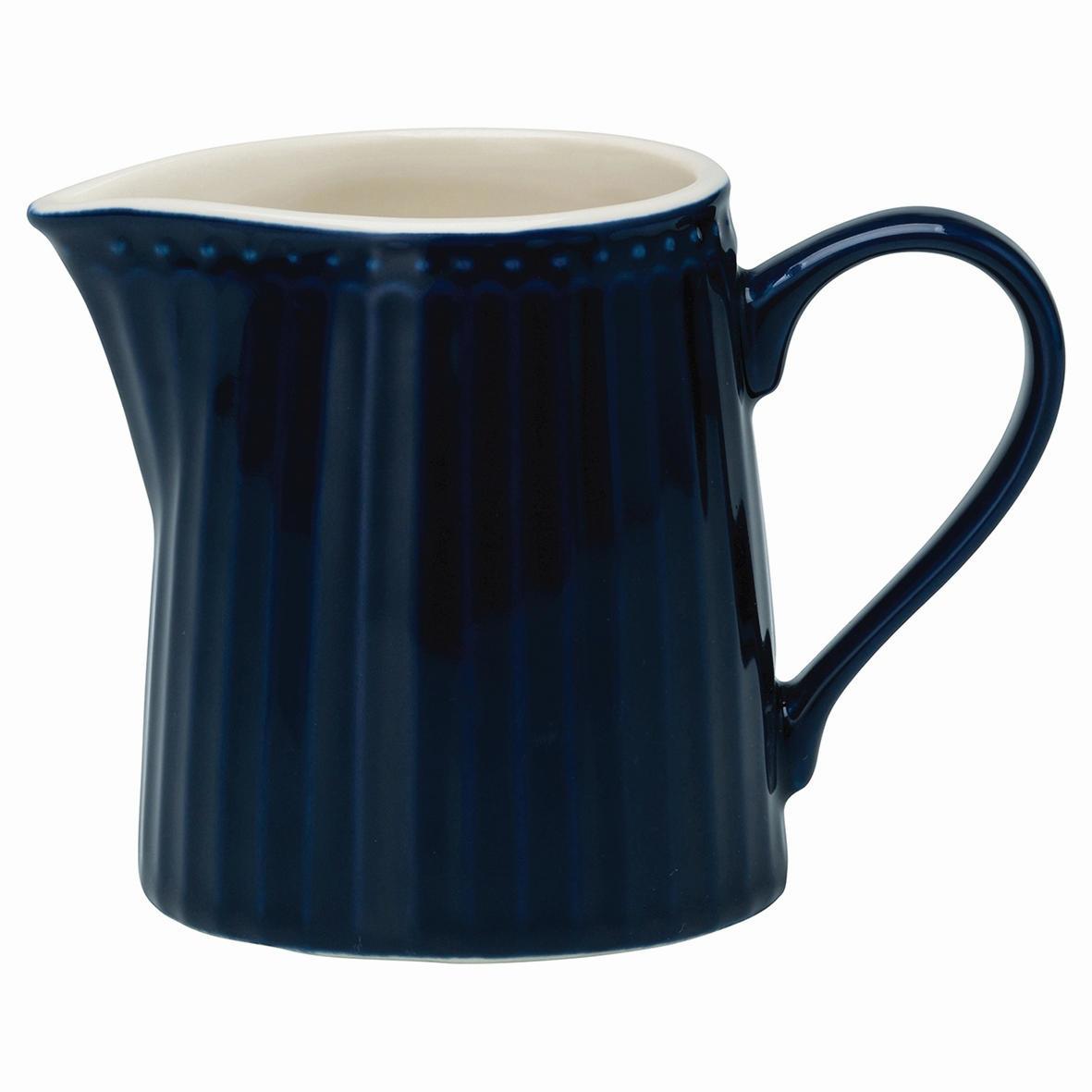 Nádherná kolekcia riadu s vrúbkami Alice od dánskej značky Green Gate rozžiari vašu kuchyňu! Roztomilý džbánik v tmavo modrej farbe je ideálny na mlieko a smotanu, ale krásne v ňom bude vyzerať aj kytička snežienok.