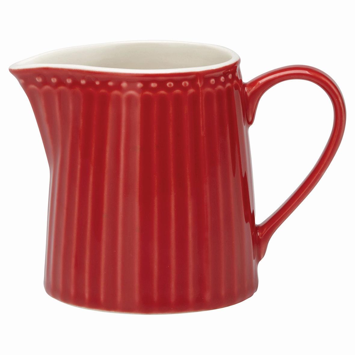 Nádherná kolekcia riadu s vrúbkami Alice od dánskej značky Green Gate rozžiari vašu kuchyňu! Roztomilý džbánik v červenej farbe je ideálny na mlieko a smotanu, ale krásne v ňom bude vyzerať aj kytička snežienok.