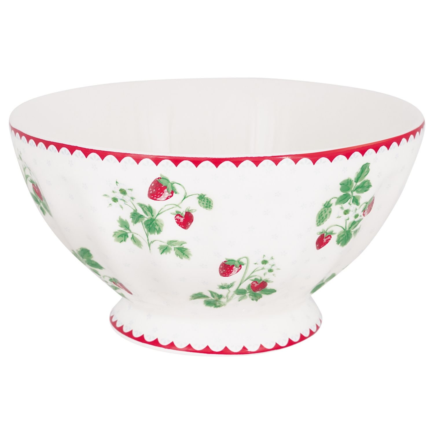 Porcelánová miska s letným motívom jahôd Berry White je svojou veľkosťou ideálna na prílohové šaláty, rannú ovsenú kašu, puding s ovocím alebo domáce kopčeky zmrzliny.