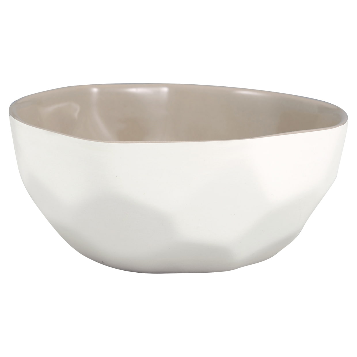 Miska je vyrobená z porcleánu a má jedinečný geometrický povrch. Z vonkajšej strany ju definuje tlmená biela glazúra, zatiaľ čo vnútro vypĺňa béžová.