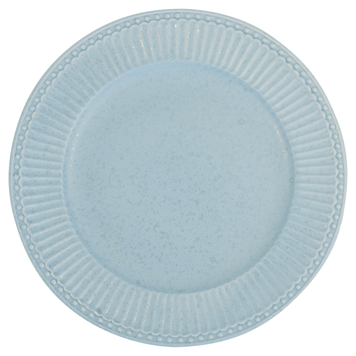 Krásna kolekcia riadu Alice Ice Blue od dánskej značky Green Gate rozžiari každý stôl. Jedálenský tanier má ľadovo modrú farbu a je ideálny na servírovanie hlavných chodov počas obeda alebo večere.