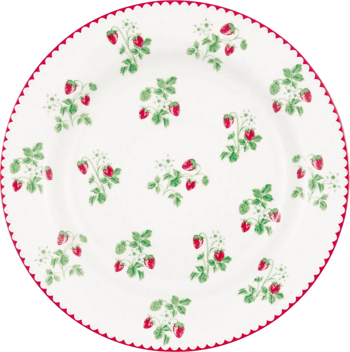 Porcelánový tanier od dánskej značky Green Gate je zdobený motívom jahôd z kolekcie Berry White, ktorý na každý stôl prinesie romantickú atmosféru. priemer 20,2 cm Vyrobené z porcelánu.