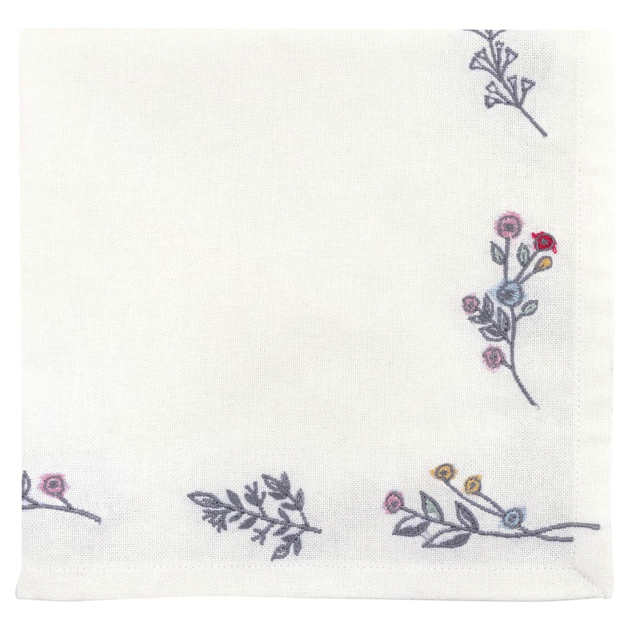 Použijete ho nielen pri stolovaní, ale aj v košíku s pečivom, na zabalenie občerstvenia alebo na prikrytie upečeného koláča. Biely bavlnený obrúsok je po obvode zdobený precíznou kvetinovou výšivkou.