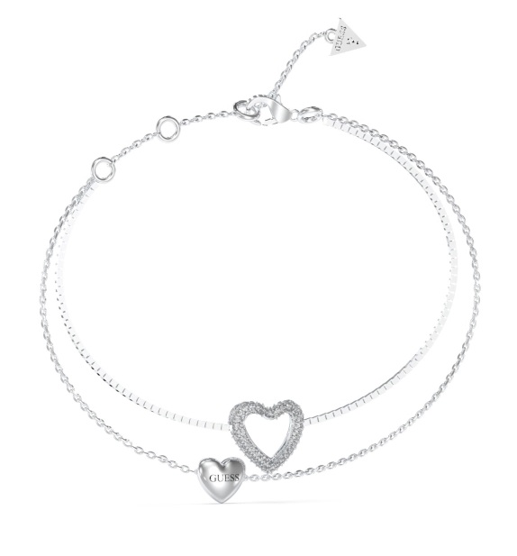 Guess Dvojitý oceľový náramok so srdiečkami Beloved JUBB05027JWRH 17 cm