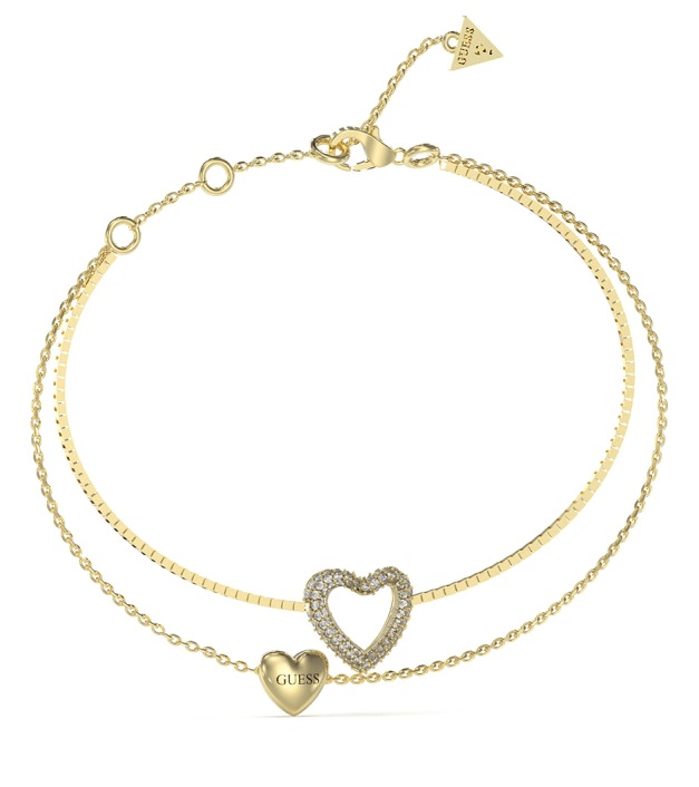 Guess Dvojitý pozlátený náramok so srdiečkami Beloved JUBB05027JWYG 17,5 cm