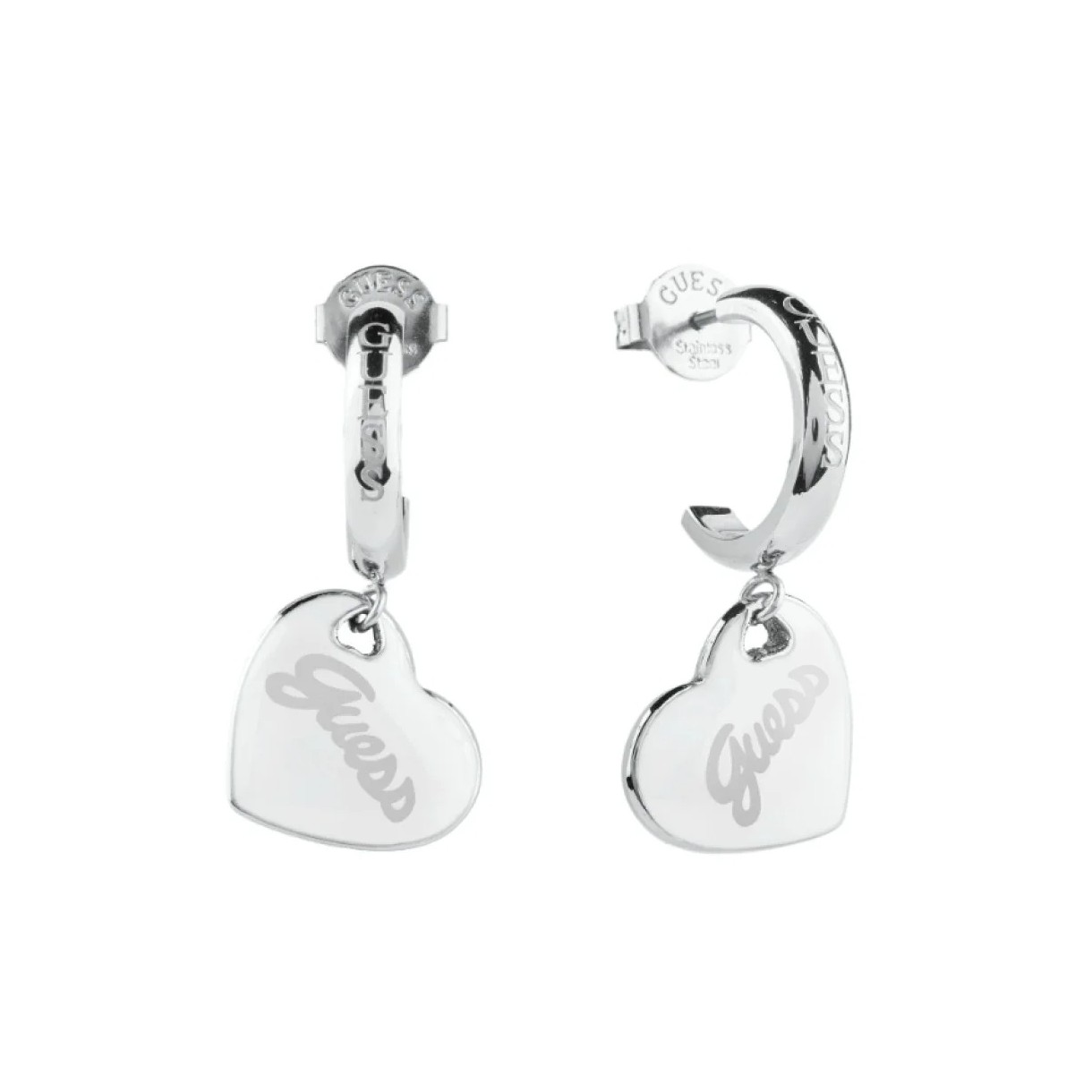 Guess Oceľové náušnice s príveskami srdca Vintage Guess JUBE05151JWRHWHT/U